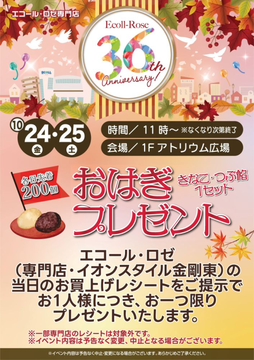 ※販売するお買物券は、イオンスタイル金剛東・一部専門店ではご利用いただけません。